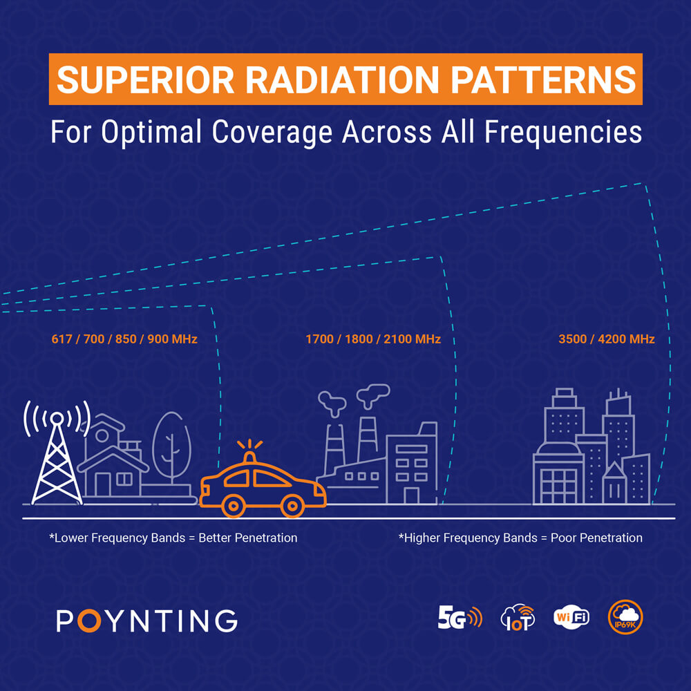 POYNTING’s antenna range covers a wide spectrum of frequencies, ensuring seamless connectivity across global markets. This makes it a versatile choice for IoT and mobility applications, providing reliable performance wherever your devices are deployed.