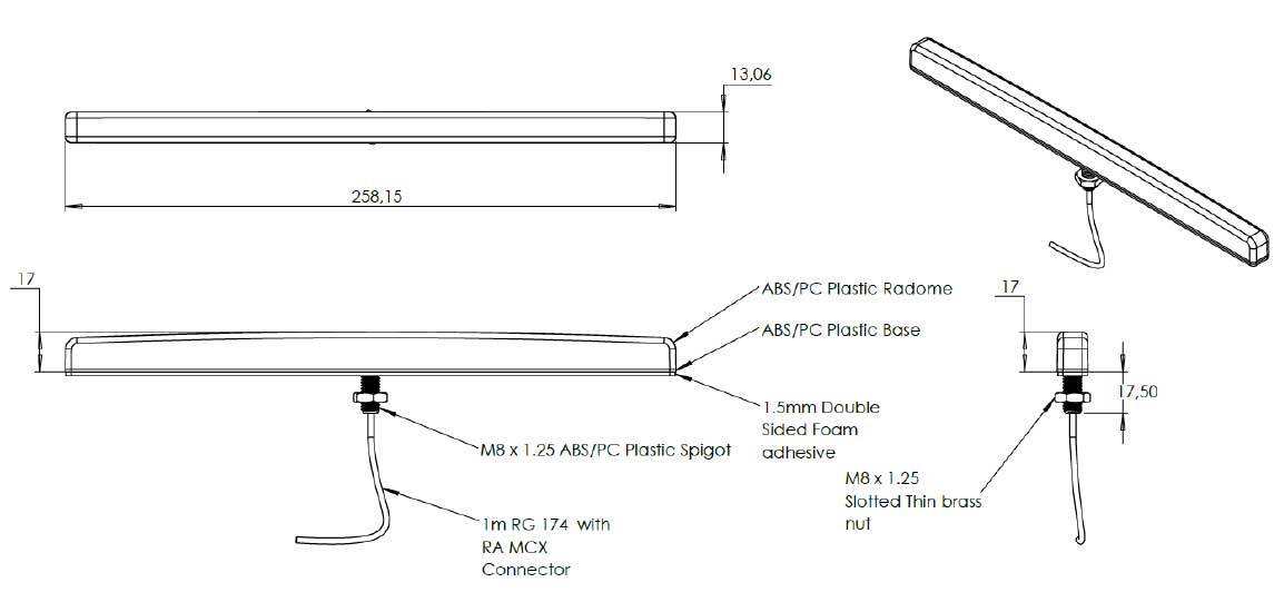 | SKU | A-DASH-0003-V1 | EAN: 707273470256 | HS Code: 8529.10.69 (EU) 8517.71.0000 (USA) 8529.10.90 (SA & Global) | Packaged Weight: 0.07kg 0.154lbs | Packaged Dimensions: 265 x 100 x 15 mm 10.43 x 3.93 x 0.59 inch | Master Box QTY: 110 | Master Box Weight: 7.61Kg 16.78lbs | Master Box Dimensions: 500 x 330 x 320 mm 19.69 x 13 x 12.6 inch | Country of Origin: CN |