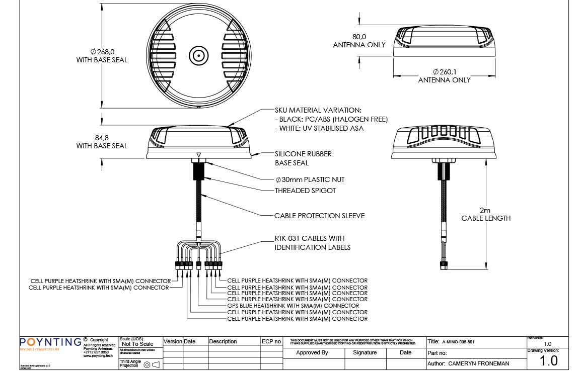 | A-MIMO-0008-V1-801-B | SMA (m) | RTK-031 / 2m | Black |