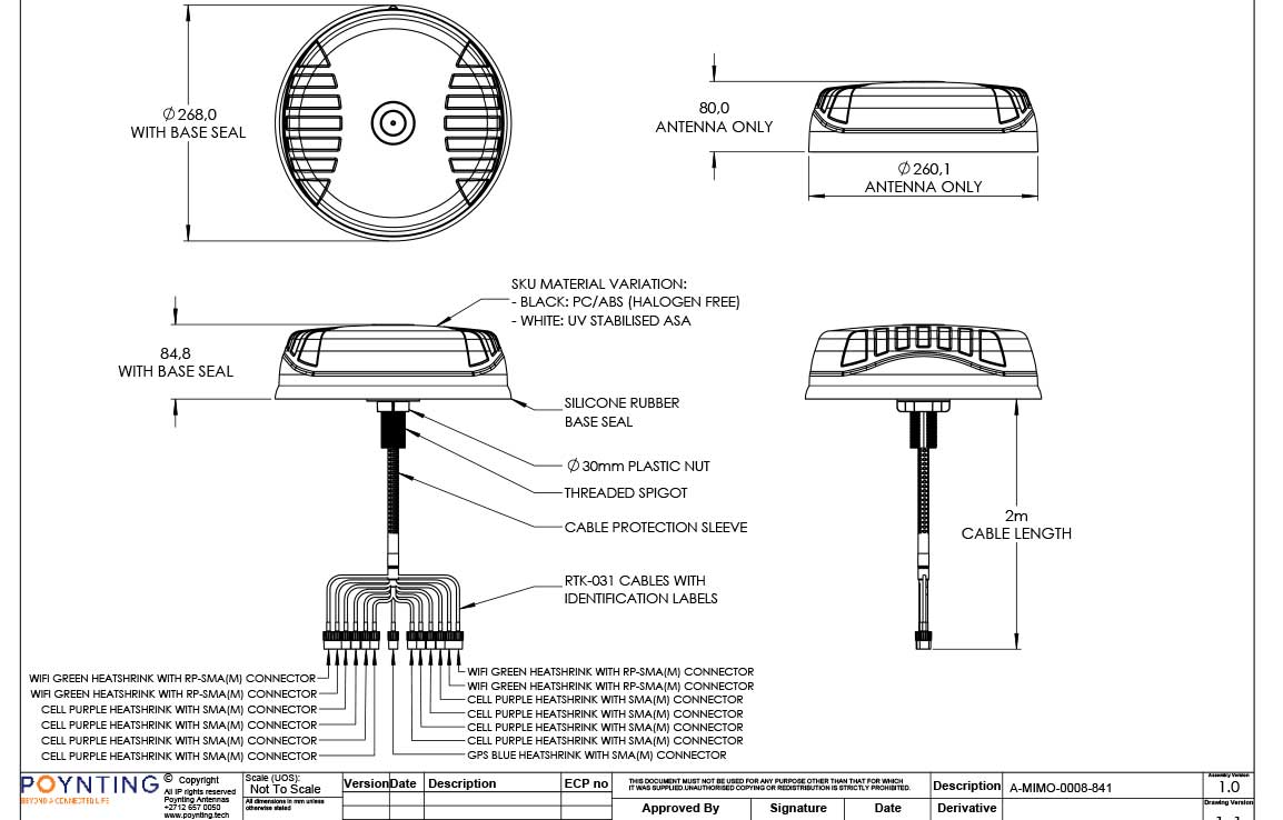 | A-MIMO-0008-V1-841-W | RTK-031 / 2m | White |