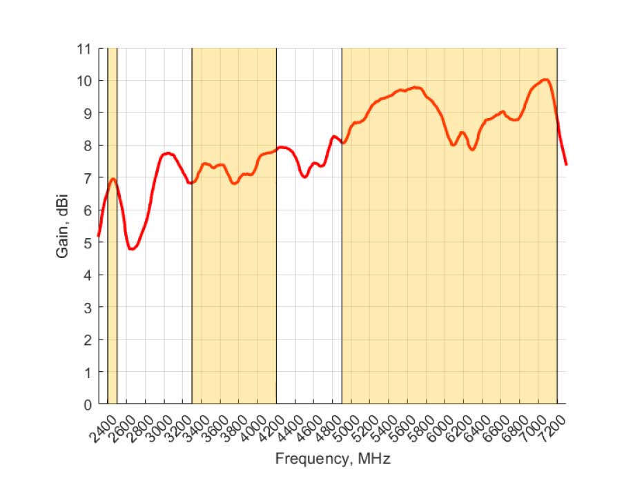 2400 - 2500 MHz, 3300 - 4200 MHz & 4900 - 7200 MHz, 10dBi