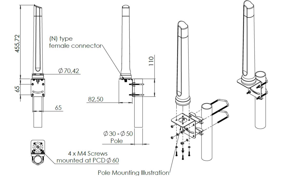 Easy Integration: Equipped with an N-Type female connector, allowing flexible cable connections for customized installations.