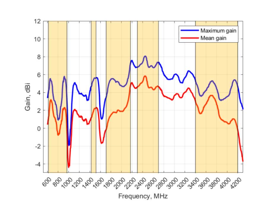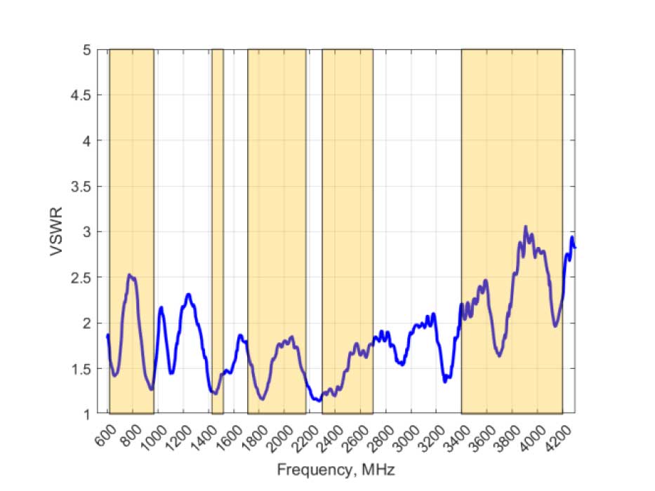 | Frequency Band | 617-698MHz, 698-803MHz, 791-894MHz, 868-915MHz, 880-960MHz, 1427-1517MHz, 1700-1900MHz, 1900-2200MHz, 2300-2400MHz, 2400-2500MHz, 2500-2700MHz, 3400-3800MHz, 3800-4200MHz |