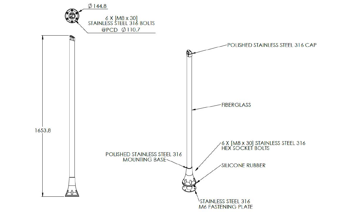 Marine-Grade Durability: Fully saltwater protected with a rugged fiberglass radome, designed to withstand highly corrosive environments.